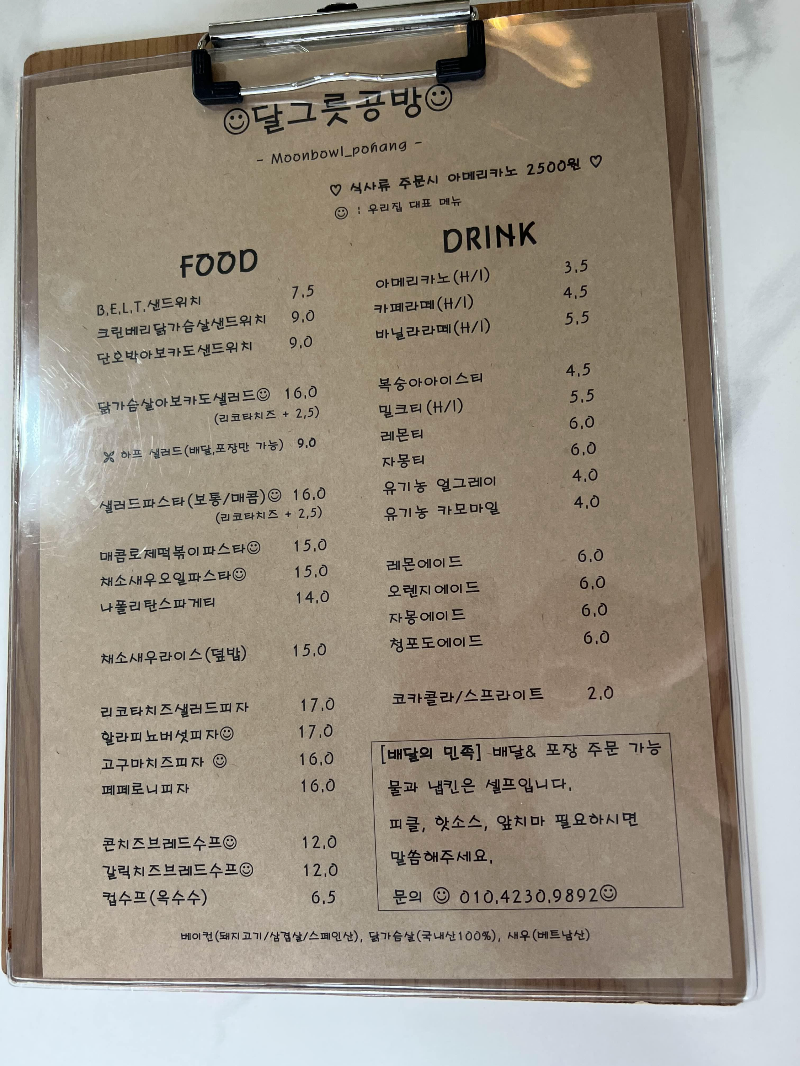 포항 브런치 카페 맛집 달그릇 공방 메뉴