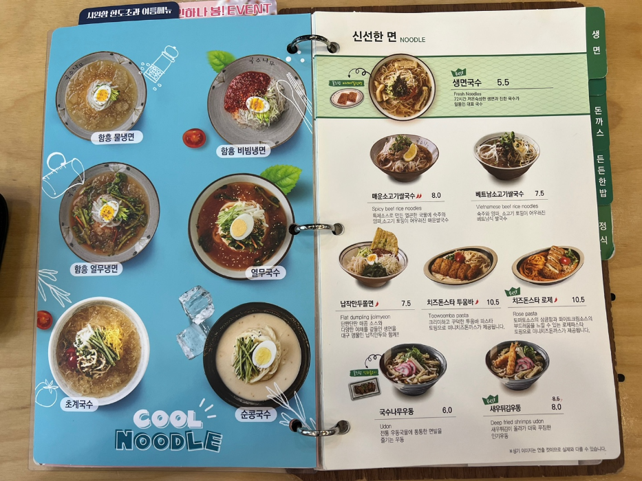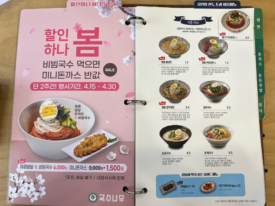 국수나무 메뉴판 찍는데 몇 장을 넘겼는지 모르겠네요.