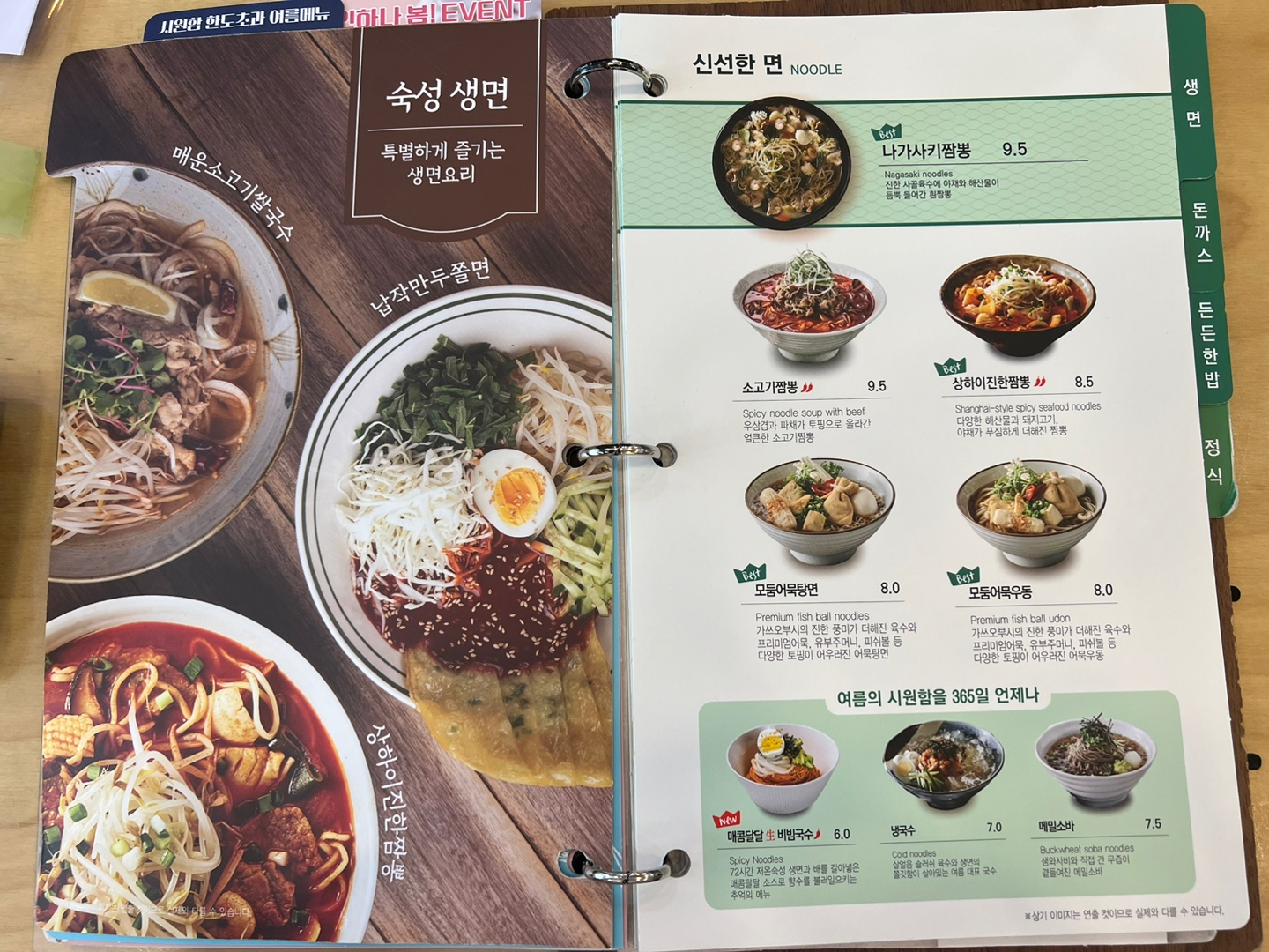 면, 돈가스, 밥, 정식, 사이드 메뉴까지 종류가 참 많죠?