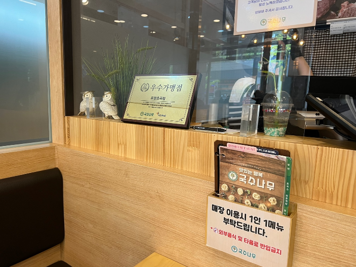 맛도 있었지만 매장 안이 청결해서 아이와 오기 딱 좋다고 생각했는데 우수가맹점이라 하니 더욱더 마음에 드는 국수나무 초곡점.