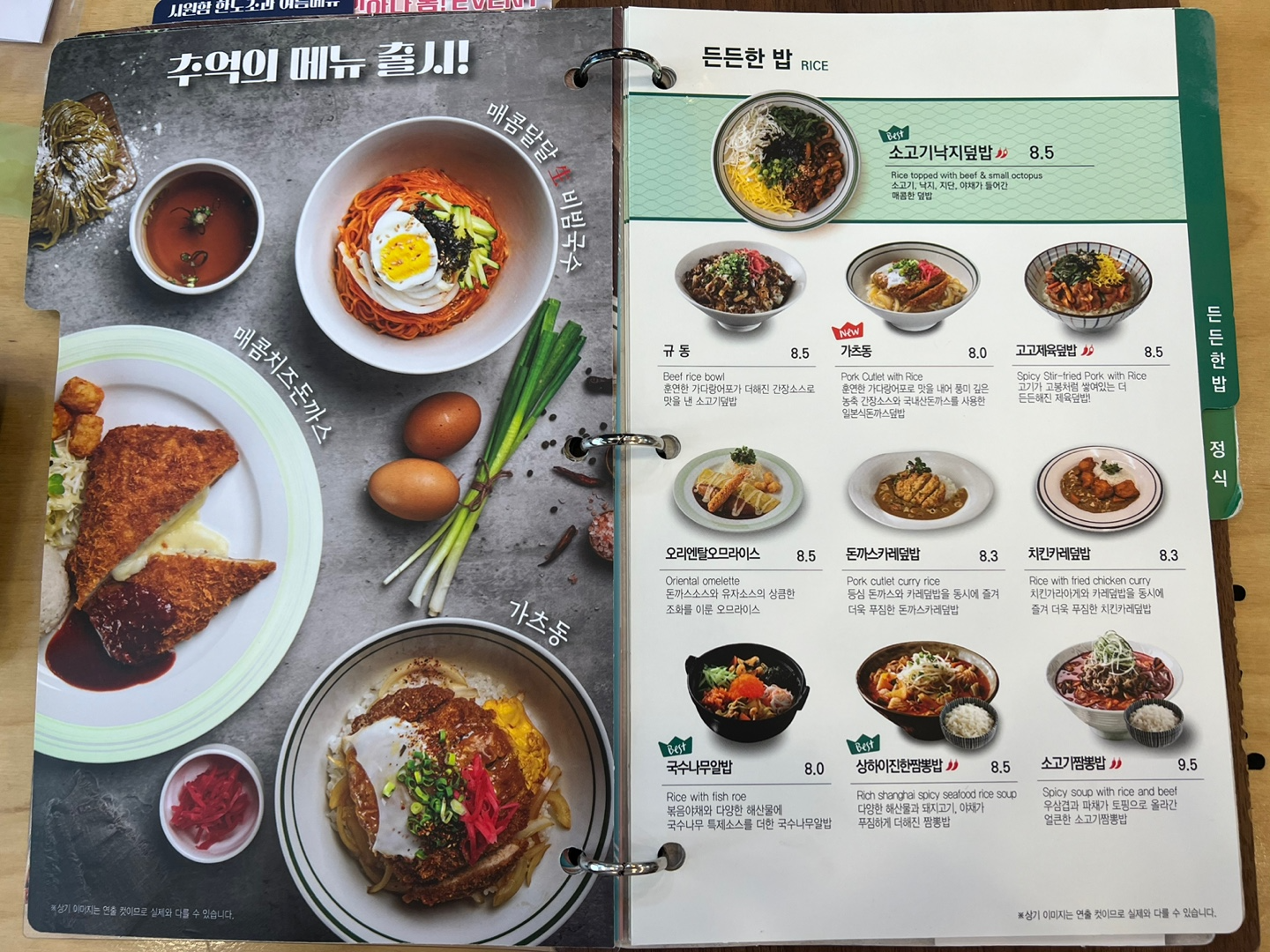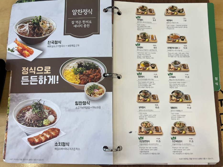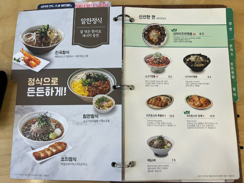 면, 돈가스, 밥, 정식, 사이드 메뉴까지 종류가 참 많죠?