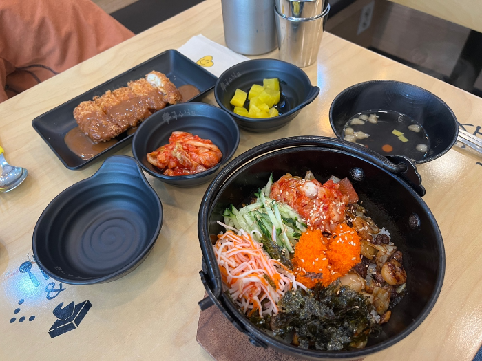 알밥이 뚝배기 같은 아주 뜨거운 냄비 같은 곳에 담겨 나오기 때문에 데이지 않게 조심하셔야 해요.