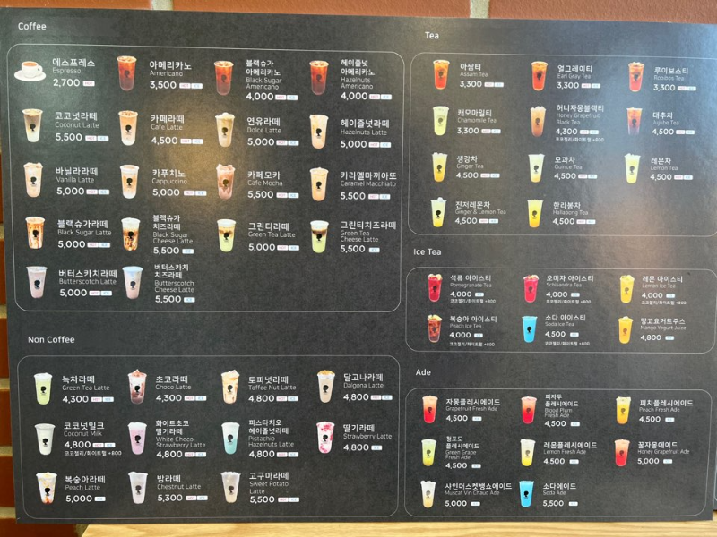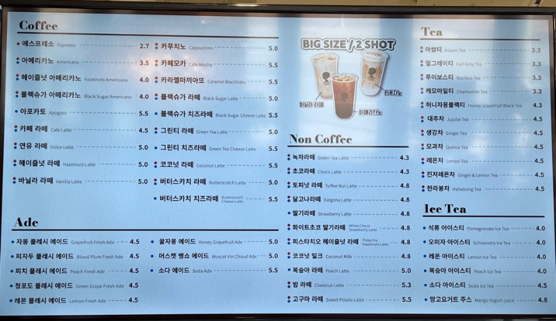 메뉴가 엄청 많아서 결정장애자인 저는 고르기 힘들었어요.