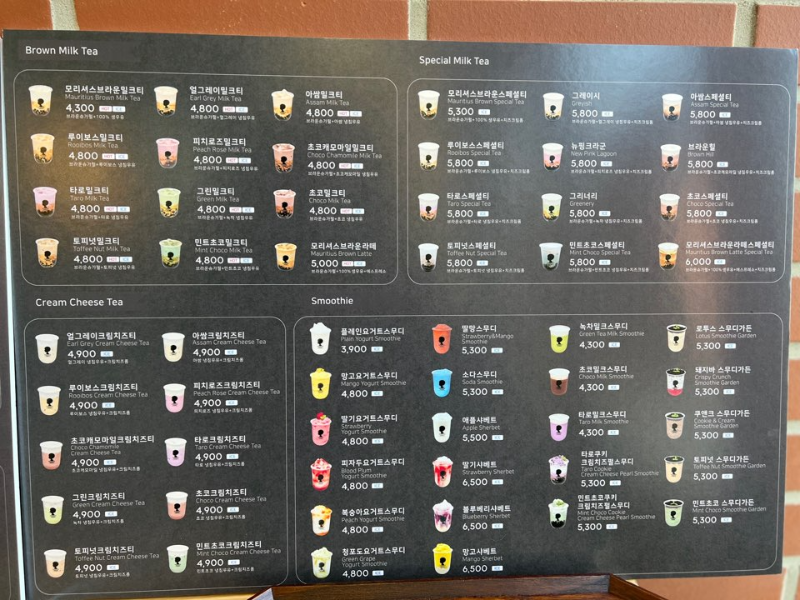 첫 방문이니 제일 시그니처 메뉴인 모리셔스브라운 밀크티 두 잔과 민트초코 밀크티를 주문했어요.