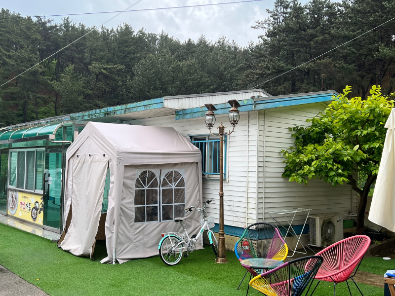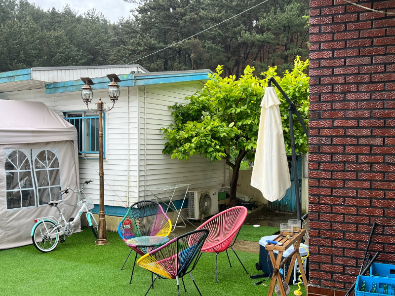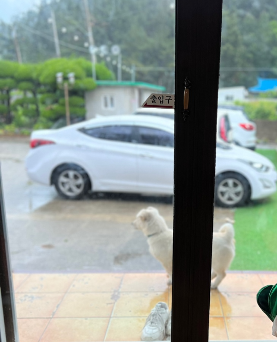 비가 왔지만 마당과 주차장이 넓어 편하게 주차할 수 있었어요.