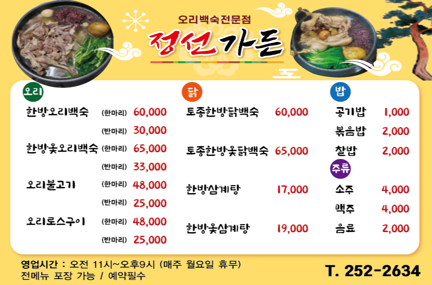 포항 오리백숙 전문점 정선 가든 메뉴